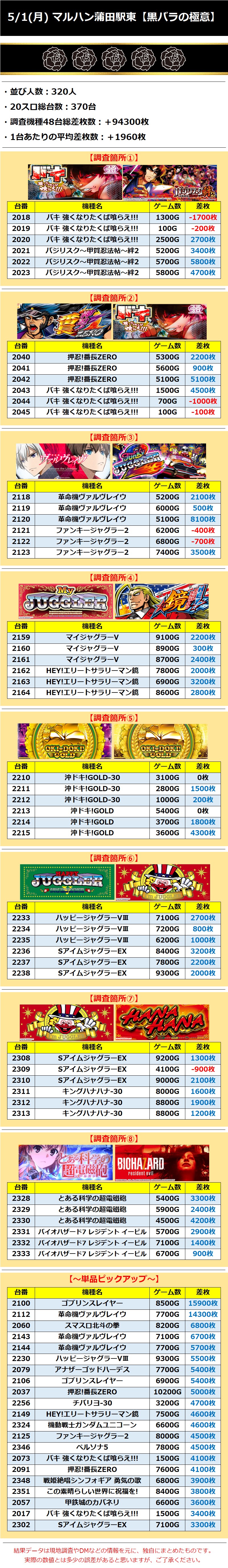 【★5】マルハン蒲田駅東 5/1(月)【黒バラの極意】 2023年05月03日 14:00 「マルハン蒲田駅東」カテゴリの最新記事 「黒バラの極意」カテゴリの最新記事 < 前の記事次の記事 > コメント コメントフォーム 名前 コメント 記事の評価 リセット リセット 顔 星 情報を記憶 コメントを投稿する