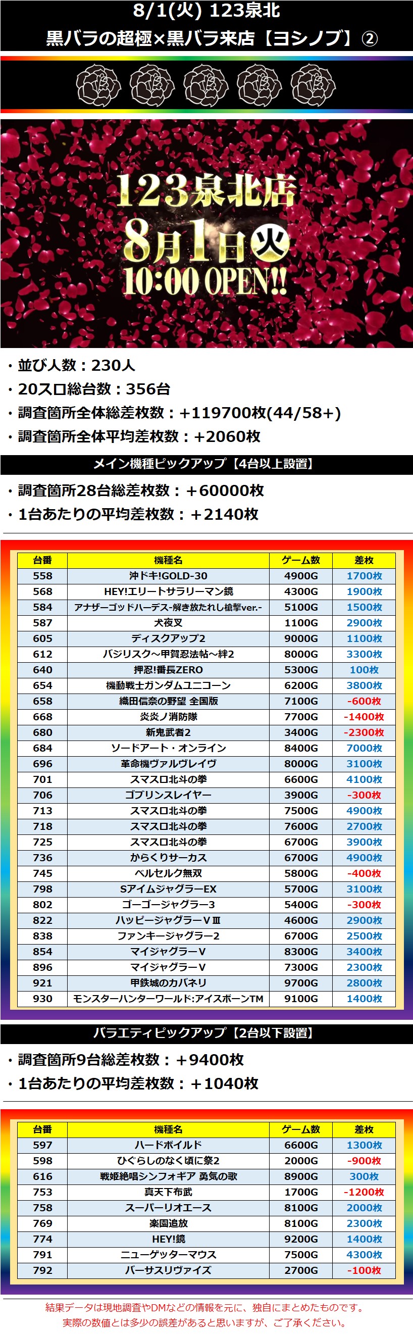 【★5】123泉北 8/1(火)【黒バラの超極×黒バラ来店】 2023年08月02日 12:00 「123泉北」カテゴリの最新記事 「黒バラの超極」カテゴリの最新記事 < 前の記事次の記事 > コメント コメントフォーム 名前 コメント 記事の評価 リセット リセット 顔 星 情報を記憶 コメントを投稿する