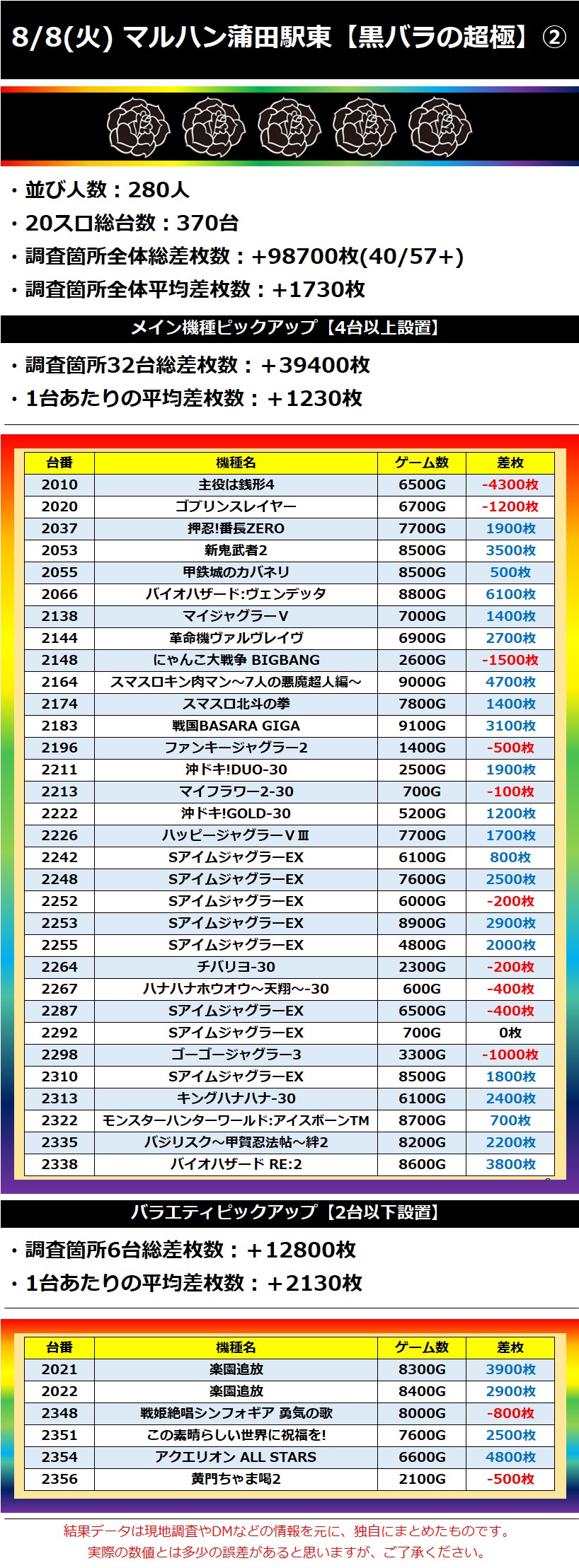 【★5】マルハン蒲田駅東 8/8(火)【黒バラの超極】 2023年08月09日 12:00 「マルハン蒲田駅東」カテゴリの最新記事 「黒バラの超極」カテゴリの最新記事 < 前の記事次の記事 > コメント コメントフォーム 名前 コメント 記事の評価 リセット リセット 顔 星 情報を記憶 コメントを投稿する