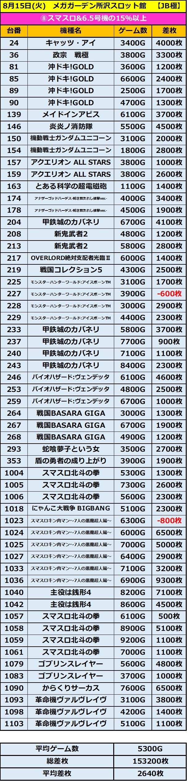 メガガーデン所沢スロット館 8/15(火)【JB極④⑧】 2023年08月16日 12:00 「メガガーデン所沢スロット館」カテゴリの最新記事 「JB極」カテゴリの最新記事 < 前の記事次の記事 > コメント コメントフォーム 名前 コメント 記事の評価 リセット リセット 顔 星 情報を記憶 コメントを投稿する