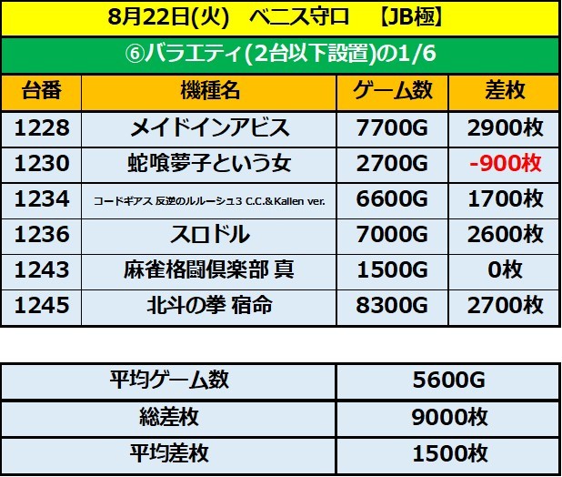 ベニス守口 8/22(火)【JB極①➁⑤⑥】 2023年08月23日 12:00 「ベニス守口」カテゴリの最新記事 「JB極」カテゴリの最新記事 < 前の記事次の記事 > コメント コメントフォーム 名前 コメント 記事の評価 リセット リセット 顔 星 情報を記憶 コメントを投稿する