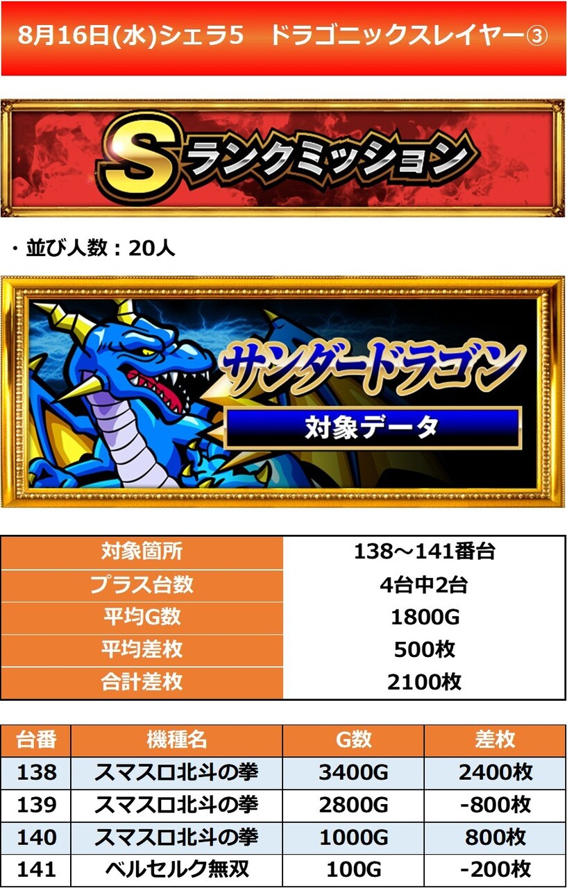 シェラ5 8/16(水)【ドラゴニックスレイヤー】 2023年08月17日 12:00 「スロットハウスシェラ5」カテゴリの最新記事 「ドラゴニックスレイヤー」カテゴリの最新記事 < 前の記事次の記事 > コメント コメントフォーム 名前 コメント 記事の評価 リセット リセット 顔 星 情報を記憶 コメントを投稿する