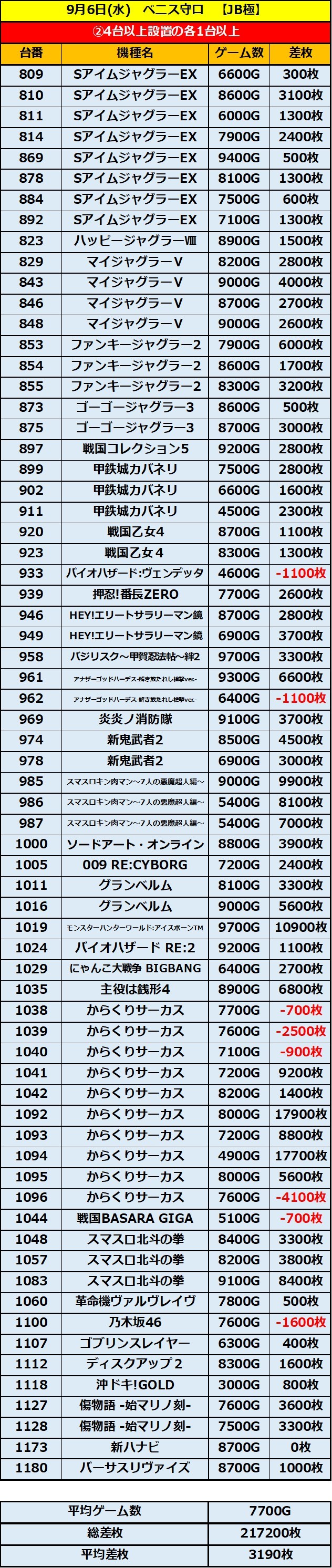 ベニス守口 9/6(水)【JB極①➁④⑤】 2023年09月07日 12:00 「ベニス守口」カテゴリの最新記事 「JB極」カテゴリの最新記事 < 前の記事次の記事 > コメント コメントフォーム 名前 コメント 記事の評価 リセット リセット 顔 星 情報を記憶 コメントを投稿する