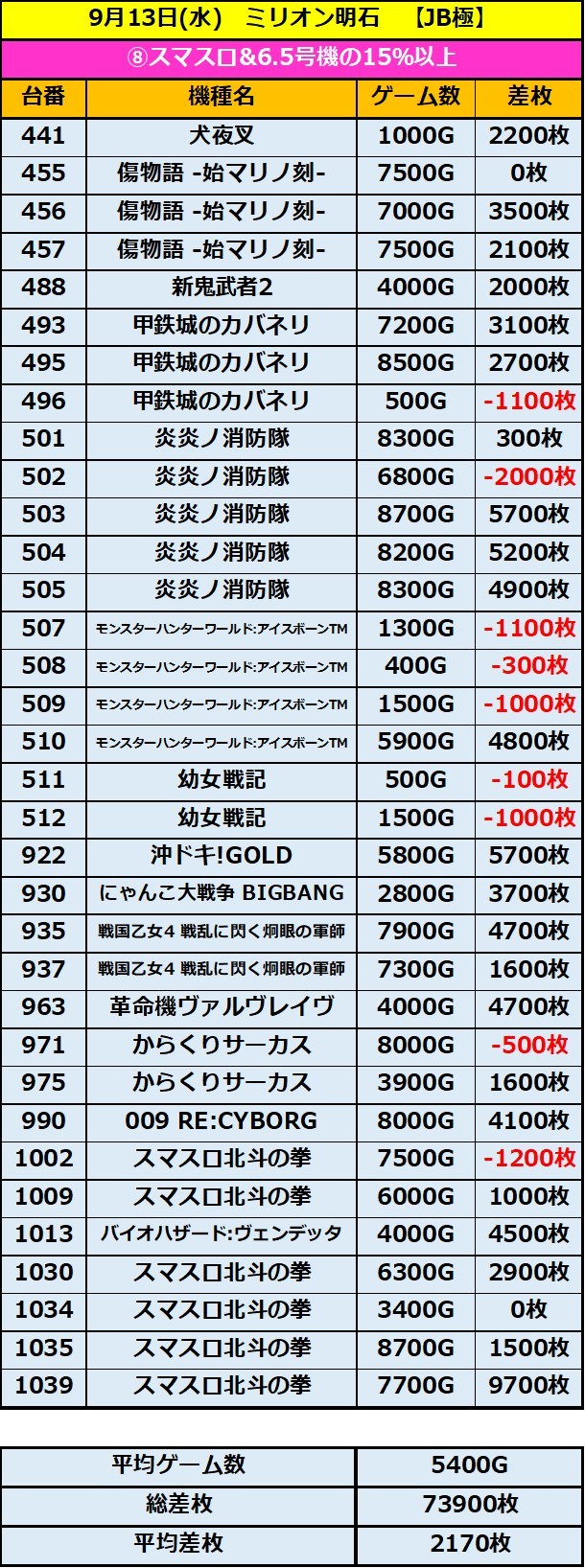 ミリオン明石 9/13(水)【JB極➀③④⑤⑥⑦⑧⑨】 2023年09月14日 12:00 「ミリオン明石」カテゴリの最新記事 「JB極」カテゴリの最新記事 < 前の記事次の記事 > コメント コメントフォーム 名前 コメント 記事の評価 リセット リセット 顔 星 情報を記憶 コメントを投稿する