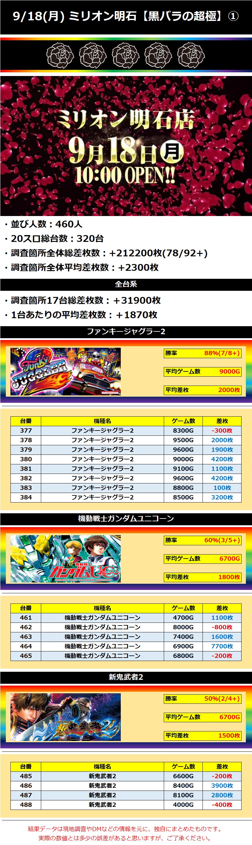 【★5】ミリオン明石 9/18(月)【黒バラの超極】 2023年09月19日 12:00 「ミリオン明石」カテゴリの最新記事 「黒バラの超極」カテゴリの最新記事 < 前の記事次の記事 > コメント コメントフォーム 名前 コメント 記事の評価 リセット リセット 顔 星 情報を記憶 コメントを投稿する