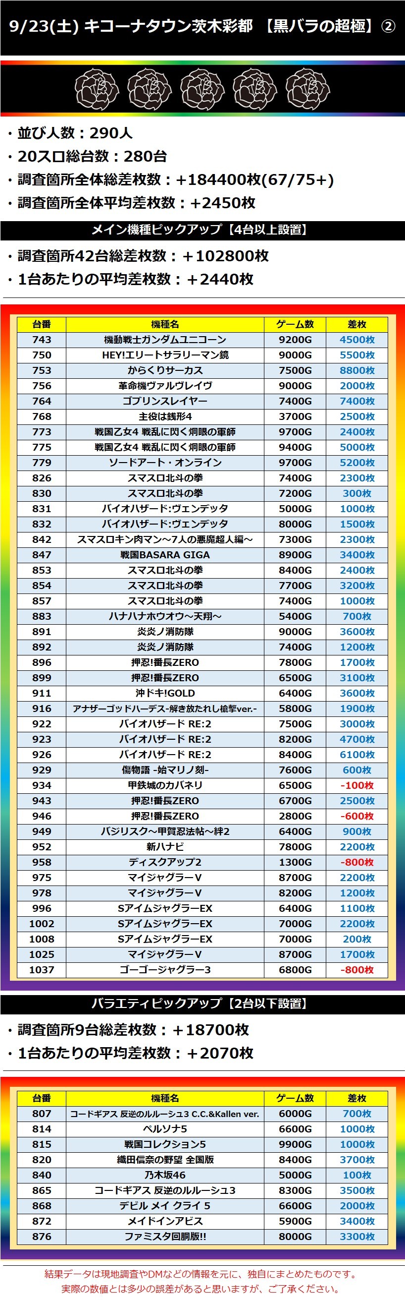 【★5】キコーナタウン茨木彩都 9/23(土)【黒バラの超極】 2023年09月24日 12:00 「キコーナタウン茨木彩都」カテゴリの最新記事 「黒バラの超極」カテゴリの最新記事 < 前の記事次の記事 > コメント コメントフォーム 名前 コメント 記事の評価 リセット リセット 顔 星 情報を記憶 コメントを投稿する