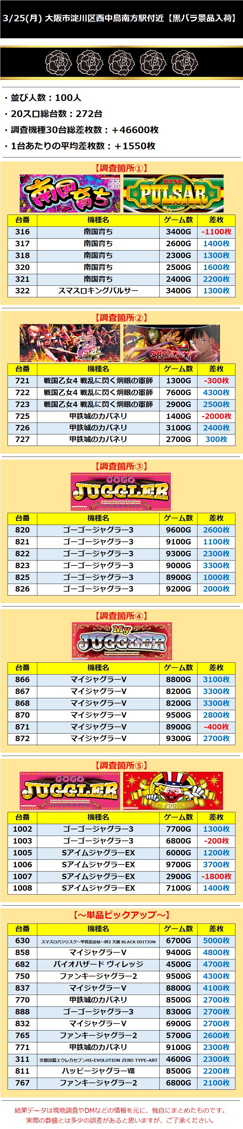 【★5】大阪市淀川区西中島南方駅付近 3/25(月)【黒バラの景品入荷】 2024年03月26日 12:00 「大阪市淀川区西中島南方駅付近」カテゴリの最新記事 「黒バラ景品入荷」カテゴリの最新記事 < 前の記事次の記事 > コメント コメントフォーム 名前 コメント 記事の評価 リセット リセット 顔 星 情報を記憶 コメントを投稿する