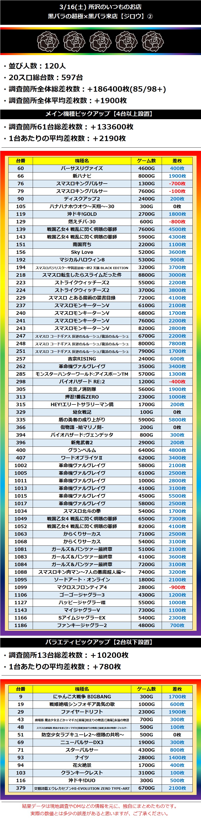 【★5】所沢のいつものお店 3/16(土)【黒バラの超極×黒バラ来店】 2024年03月17日 12:00 「所沢のいつものお店」カテゴリの最新記事 「黒バラの超極」カテゴリの最新記事 < 前の記事次の記事 > コメント コメントフォーム 名前 コメント 記事の評価 リセット リセット 顔 星 情報を記憶 コメントを投稿する