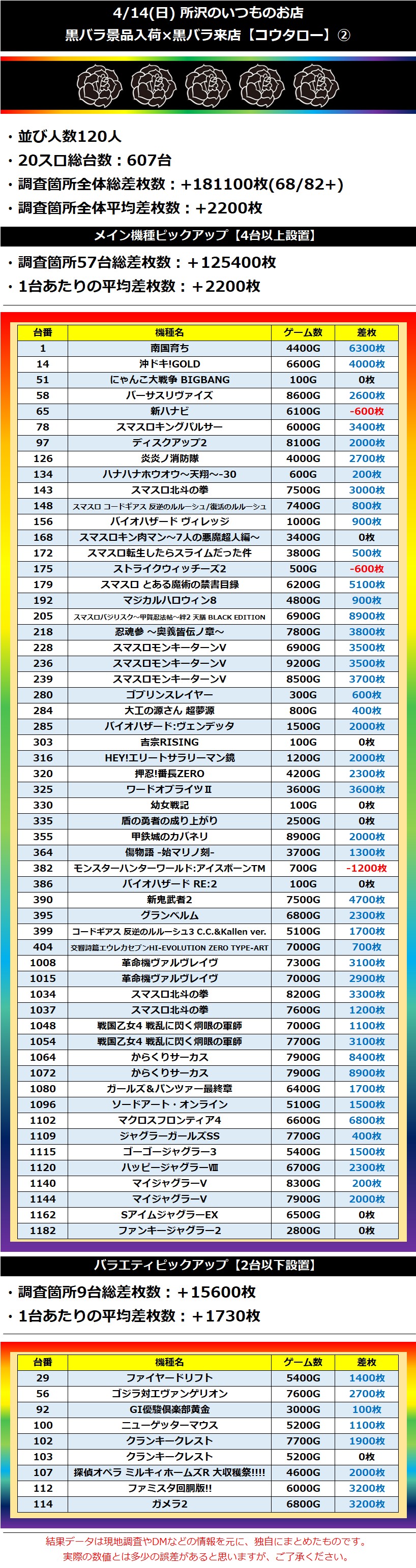 【★5】所沢のいつものお店 4/14(日)【黒バラ景品入荷×黒バラ来店】 2024年04月15日 12:00 「所沢のいつものお店」カテゴリの最新記事 「黒バラ景品入荷」カテゴリの最新記事 < 前の記事次の記事 > コメント コメントフォーム 名前 コメント 記事の評価 リセット リセット 顔 星 情報を記憶 コメントを投稿する