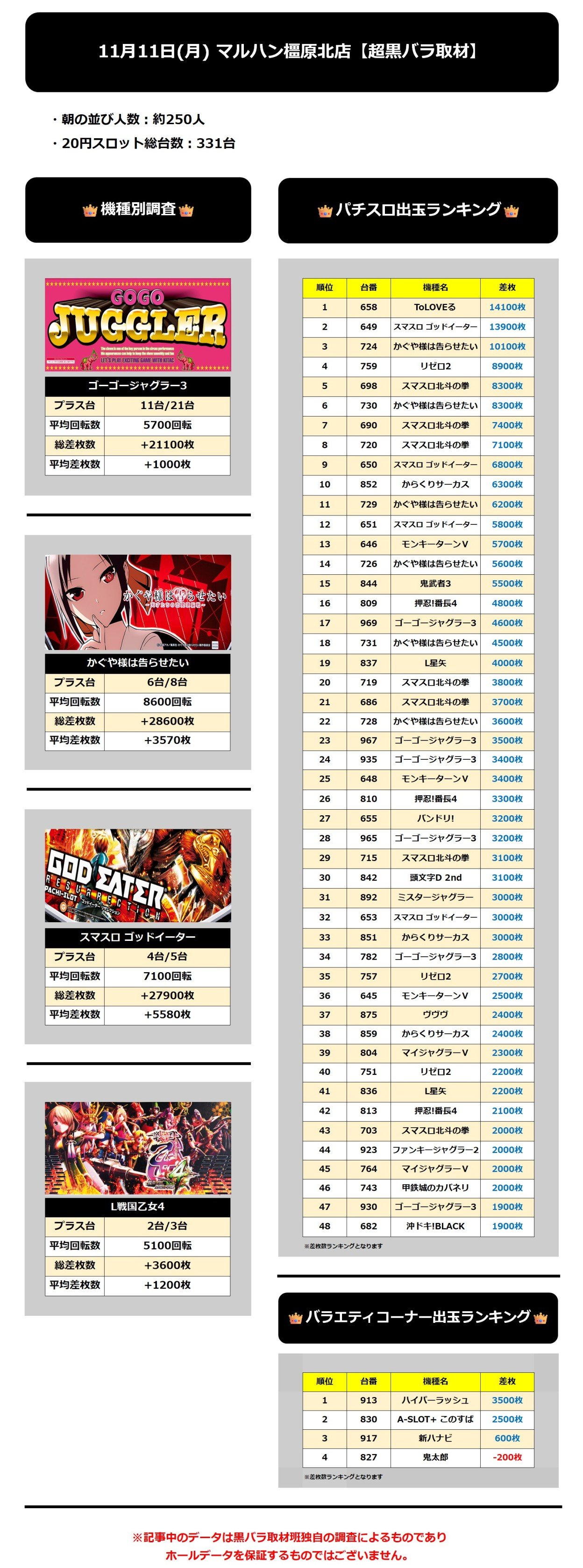 マルハン橿原北 11/11(月)【超黒バラ取材】 2024年11月12日 12:00 引用元:黒バラ情報局 「黒バラ取材・黒バラ取材班来店」カテゴリの最新記事 < 前の記事次の記事 > コメント コメントフォーム 名前 コメント 記事の評価 リセット リセット 顔 星 情報を記憶 コメントを投稿する