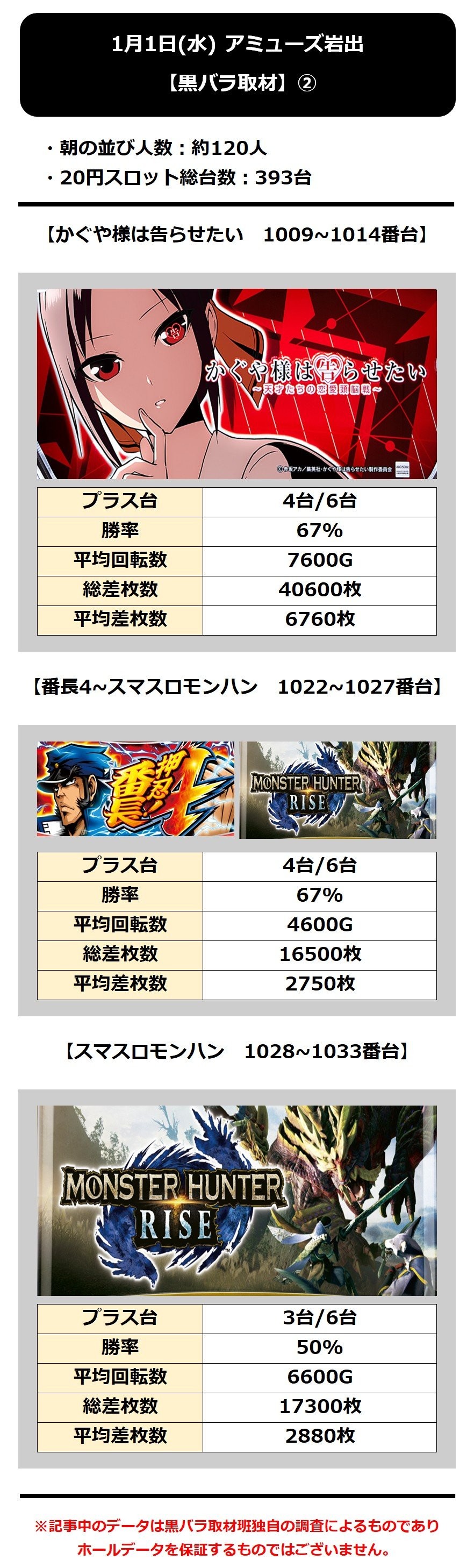 アミューズ岩出 1/1(水)【黒バラ取材】 2025年01月02日 12:00 引用元:黒バラ情報局 「【関西➀】店舗」カテゴリの最新記事 「黒バラ取材・黒バラ取材班来店」カテゴリの最新記事 < 前の記事次の記事 > コメント コメントフォーム 名前 コメント 記事の評価 リセット リセット 顔 星 情報を記憶 コメントを投稿する