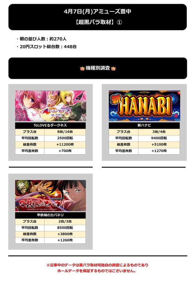 アミューズ豊中 4/7(月)【超黒バラ取材】 2025年04月08日 12:00 引用元:黒バラ情報局 「アミューズ豊中」カテゴリの最新記事 「黒バラ取材・黒バラ取材班来店」カテゴリの最新記事 < 前の記事次の記事 > コメント コメントフォーム 名前 コメント 記事の評価 リセット リセット 顔 星 情報を記憶 コメントを投稿する