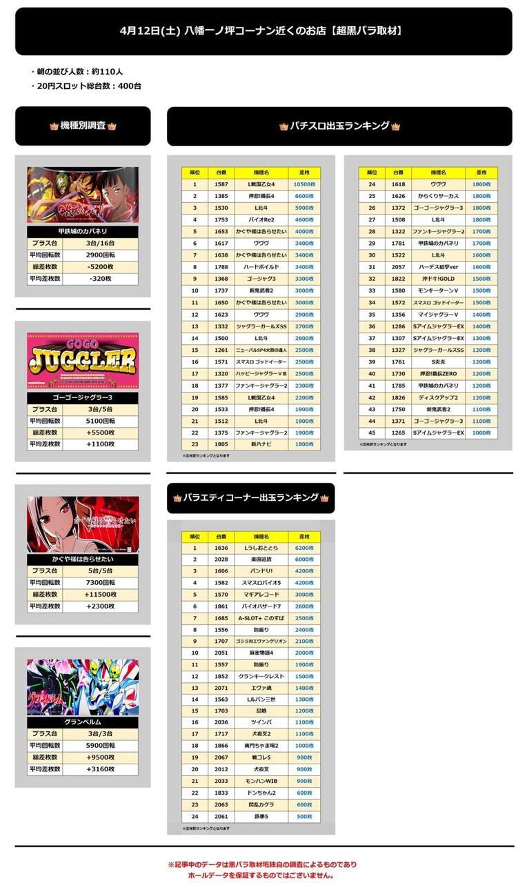 八幡一ノ坪コーナン近くのお店 4/12(土)【超黒バラ取材】 2025年04月13日 12:00 引用元:黒バラ情報局 「【関西➀】店舗」カテゴリの最新記事 「黒バラ取材・黒バラ取材班来店」カテゴリの最新記事 < 前の記事次の記事 > コメント コメントフォーム 名前 コメント 記事の評価 リセット リセット 顔 星 情報を記憶 コメントを投稿する