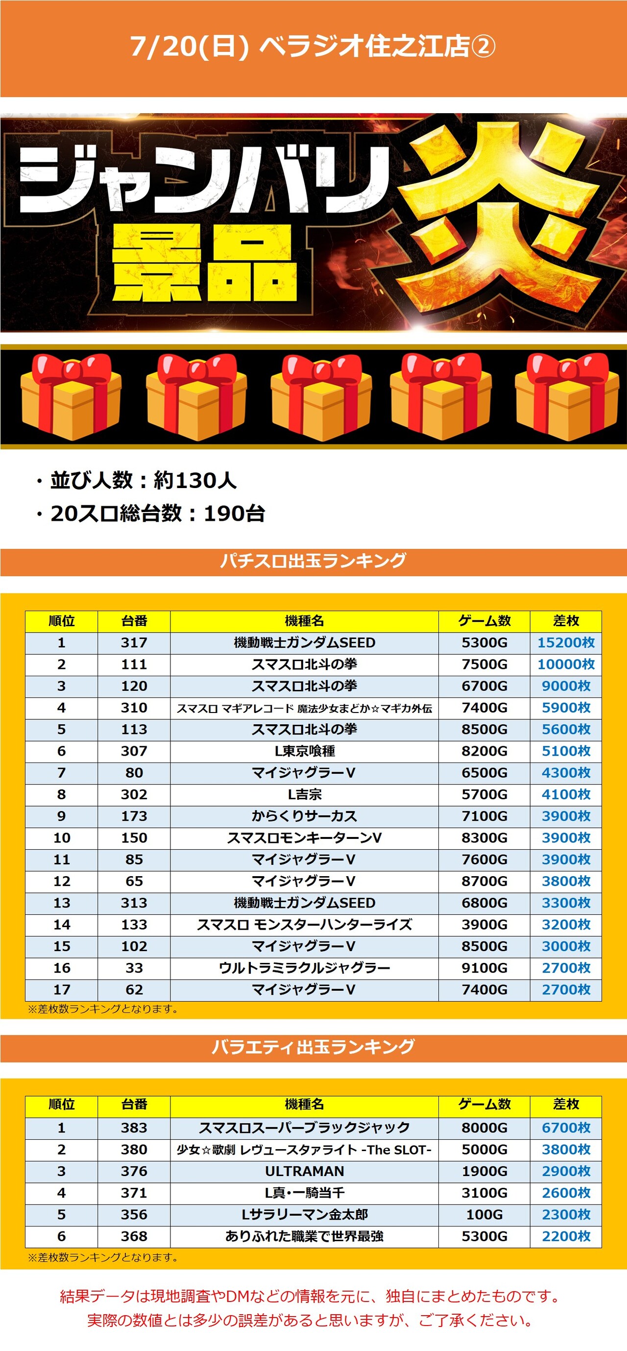 【🎁5】ベラジオ住之江 7/20(日) 【ジャンバリ景品入荷炎】 2025年07月21日 12:00 「ベラジオ住之江」カテゴリの最新記事 「ジャンバリ景品入荷」カテゴリの最新記事 < 前の記事次の記事 > コメント コメントフォーム 名前 コメント 記事の評価 リセット リセット 顔 星 情報を記憶 コメントを投稿する