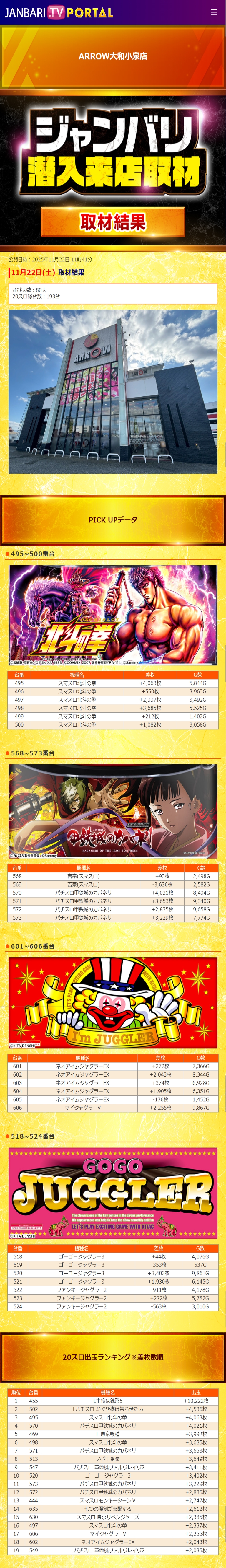 アロー大和小泉 11/22(土)【ジャンバリ潜入来店取材】 2025年11月23日 12:00 引用元:ジャンバリ潜入来店取材 「アロー大和小泉」カテゴリの最新記事 「ジャンバリ潜入来店取材」カテゴリの最新記事 < 前の記事次の記事 > コメント コメントフォーム 名前 コメント 記事の評価 リセット リセット 顔 星 情報を記憶 コメントを投稿する