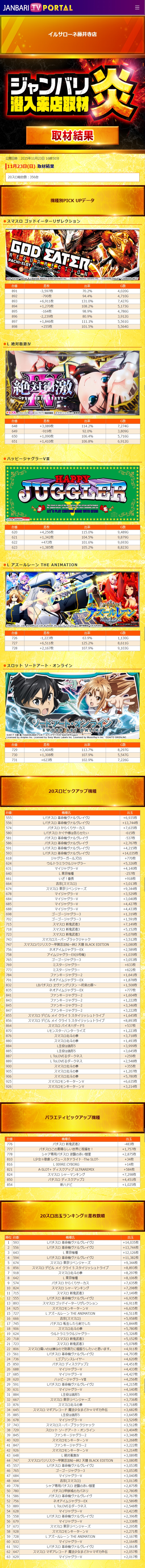 イルサローネ藤井寺 11/23(日)【ジャンバリ潜入来店取材炎】 2025年11月24日 12:00 引用元:ジャンバリ潜入来店取材 「イルサローネ藤井寺」カテゴリの最新記事 「ジャンバリ潜入来店取材」カテゴリの最新記事 < 前の記事次の記事 > コメント コメントフォーム 名前 コメント 記事の評価 リセット リセット 顔 星 情報を記憶 コメントを投稿する