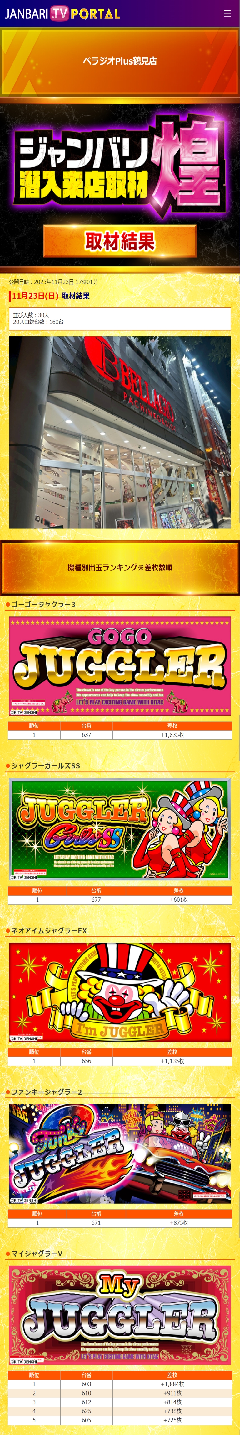 ベラジオPlus鶴見 11/23(日)【ジャンバリ潜入来店取材煌】 2025年11月24日 12:00 引用元:ジャンバリ潜入来店取材 「べラジオPlus鶴見」カテゴリの最新記事 「ジャンバリ潜入来店取材」カテゴリの最新記事 < 前の記事次の記事 > コメント コメントフォーム 名前 コメント 記事の評価 リセット リセット 顔 星 情報を記憶 コメントを投稿する