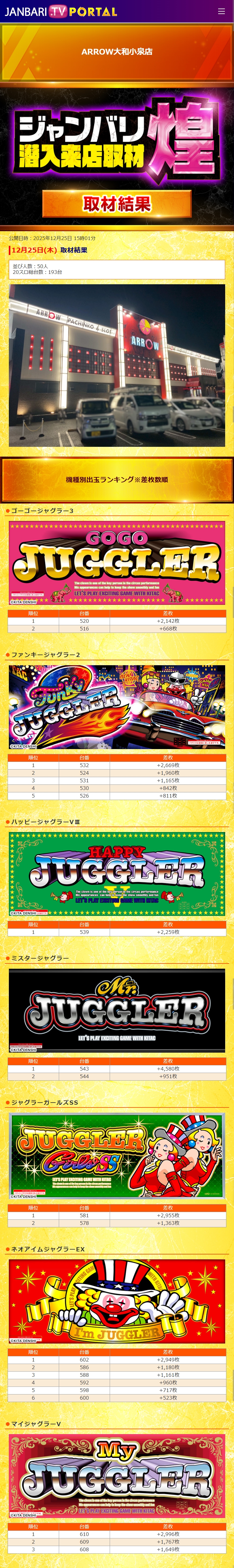 アロー大和小泉 12/25(木)【ジャンバリ潜入来店取材煌】 2025年12月26日 12:00 引用元:ジャンバリ潜入来店取材 「アロー大和小泉」カテゴリの最新記事 「ジャンバリ潜入来店取材」カテゴリの最新記事 < 前の記事次の記事 > コメント コメントフォーム 名前 コメント 記事の評価 リセット リセット 顔 星 情報を記憶 コメントを投稿する