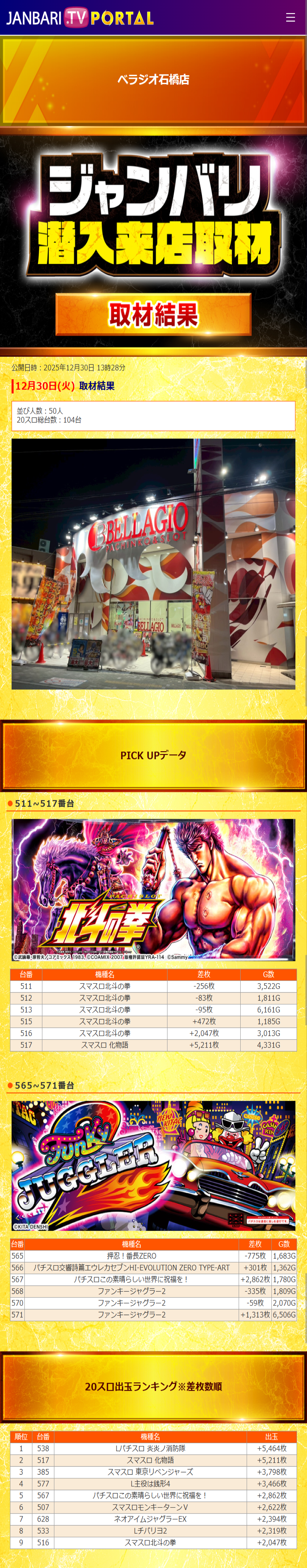 ベラジオ石橋 12/30(火)【ジャンバリ潜入来店取材】 2025年12月31日 12:00 引用元:ジャンバリ潜入来店取材 「べラジオ石橋」カテゴリの最新記事 「ジャンバリ潜入来店取材」カテゴリの最新記事 < 前の記事次の記事 > コメント コメントフォーム 名前 コメント 記事の評価 リセット リセット 顔 星 情報を記憶 コメントを投稿する
