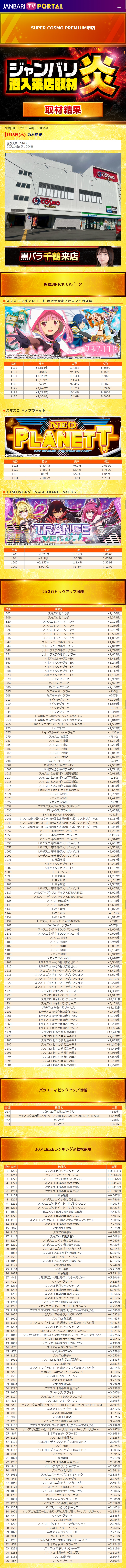 スーパーコスモプレミアム堺 1/8(木)【ジャンバリ潜入来店取材炎】 2026年01月09日 12:00 引用元:ジャンバリ潜入来店取材 「【関西➀】店舗」カテゴリの最新記事 「ジャンバリ潜入来店取材」カテゴリの最新記事 < 前の記事次の記事 > コメント コメントフォーム 名前 コメント 記事の評価 リセット リセット 顔 星 情報を記憶 コメントを投稿する