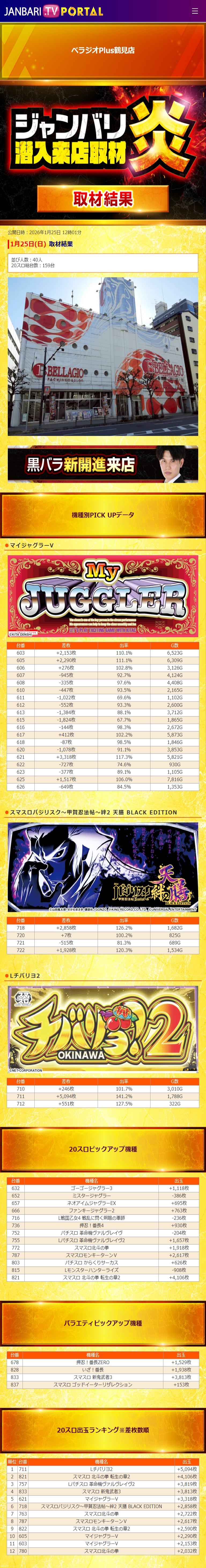 ベラジオPlus鶴見 1/25(日)【ジャンバリ潜入来店取材炎】 2026年01月26日 12:00 引用元:ジャンバリ潜入来店取材 「べラジオPlus鶴見」カテゴリの最新記事 「ジャンバリ潜入来店取材」カテゴリの最新記事 < 前の記事次の記事 > コメント コメントフォーム 名前 コメント 記事の評価 リセット リセット 顔 星 情報を記憶 コメントを投稿する